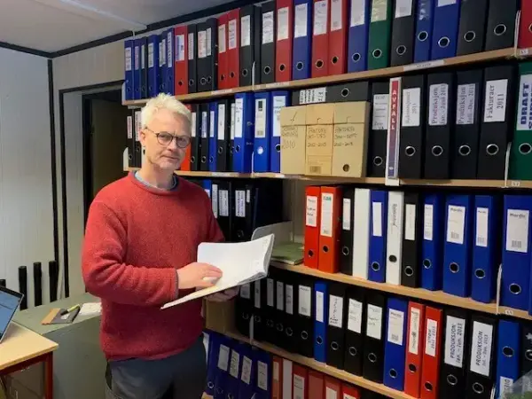 Per Kristian Ottersland i arkivrommet hos Brønnøy Kalk. Foto: Norsk bergindustriarkiv