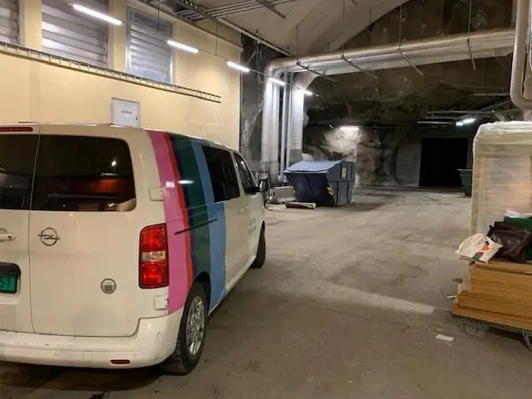 Riksarkivet ligger ved Sognsvann i Oslo, og har sine arkivmagasiner skutt inn i fjellet. Mottaket av arkivmaterialet skjer via fjellhallen. Foto: Norsk bergindustriarkiv